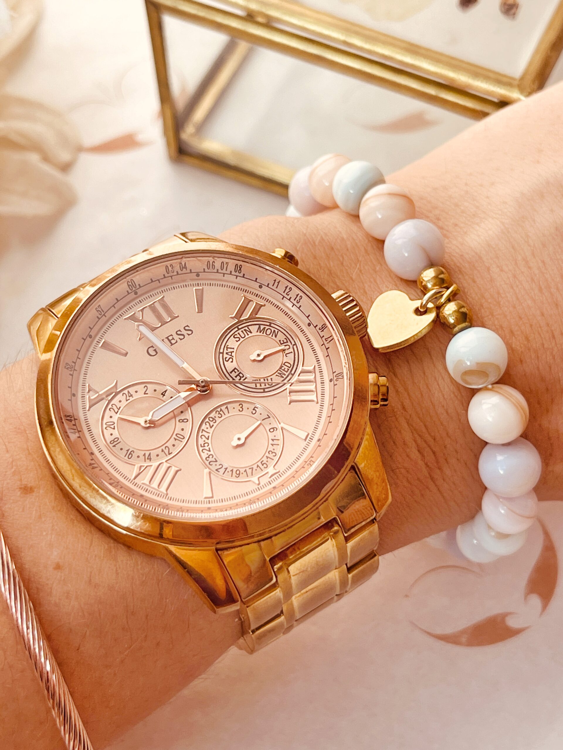 Pulsera en Nácar color pastel, con dije en acero inoxidable.